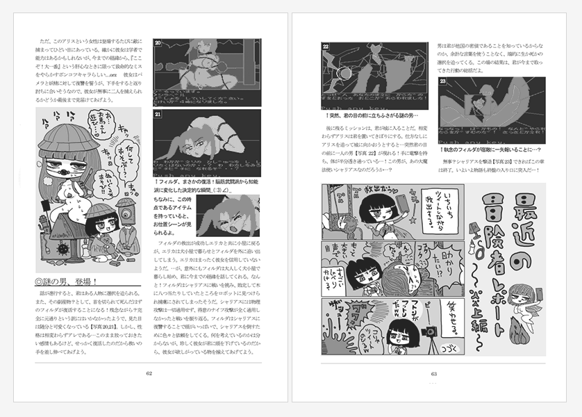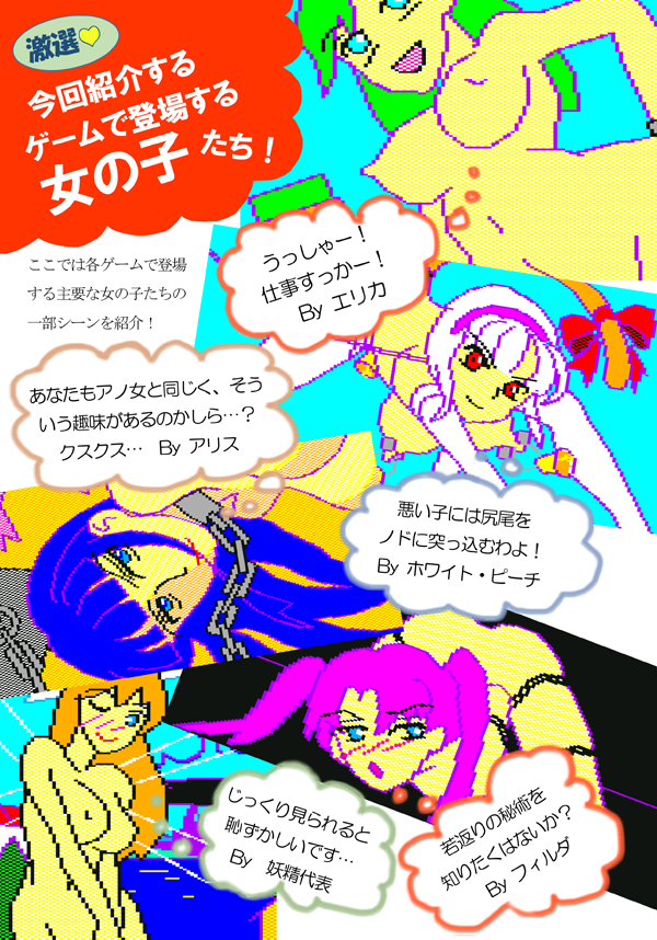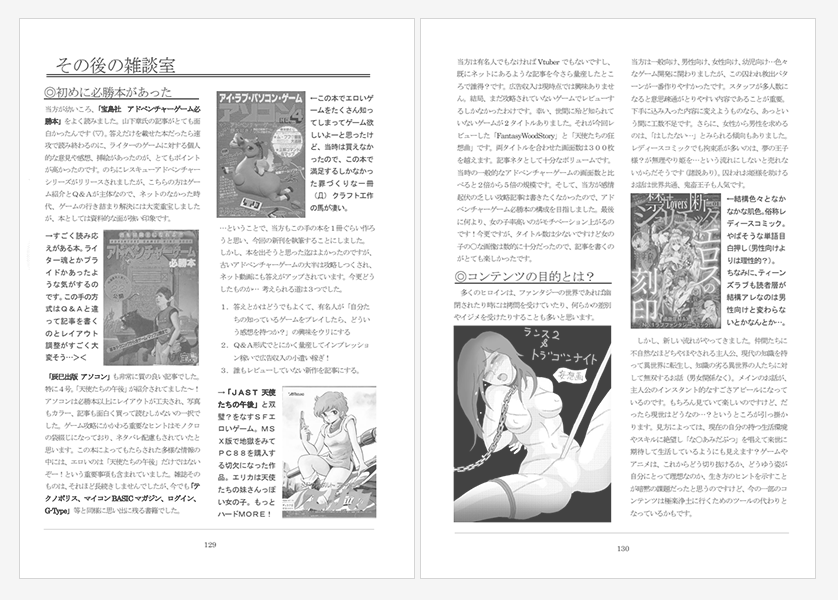 レトロアドベンチャー(特に女の子が登場する)を扱った記事、イラスト・攻略ゲームの写真掲載が多いのも特徴です。